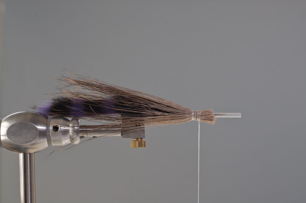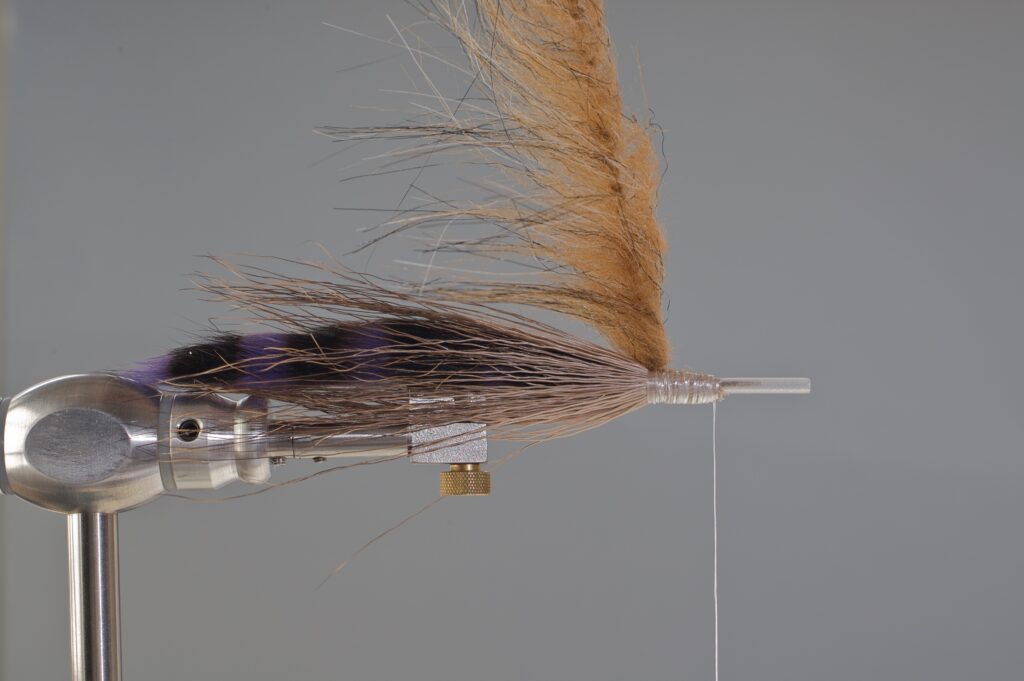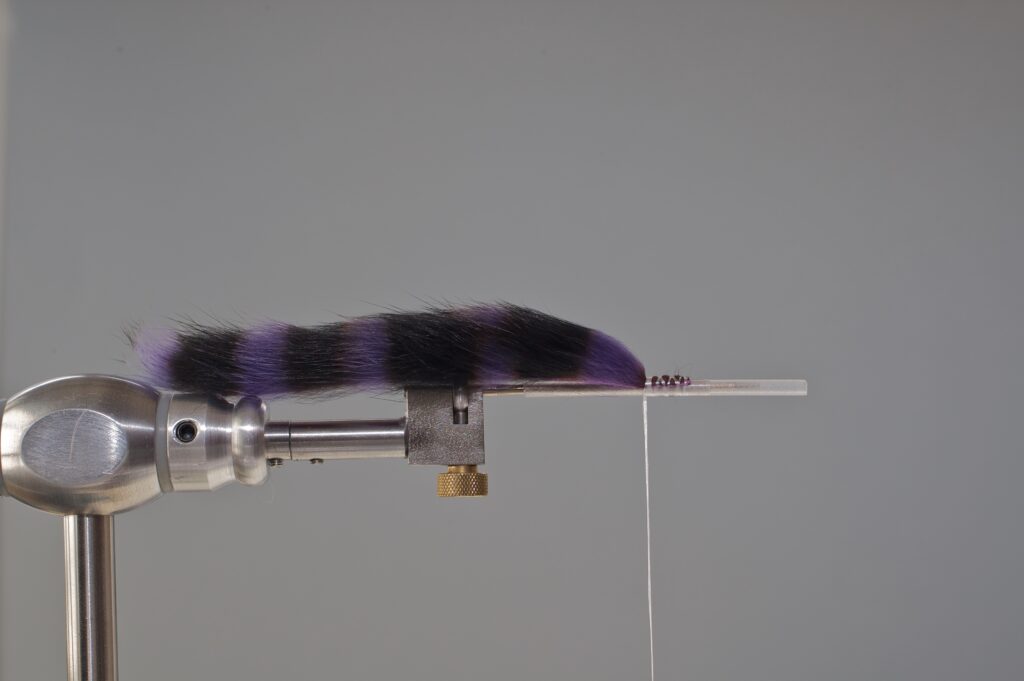 Fix a nice stripe of rabbit strip – color is up to you -on top of the tube and secure with tying lacquer.